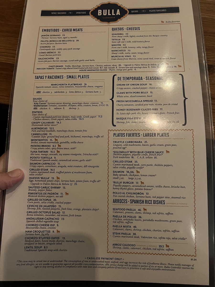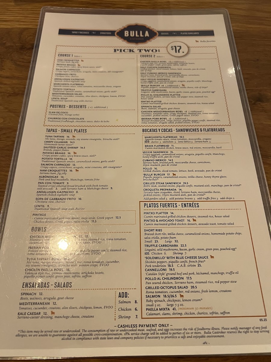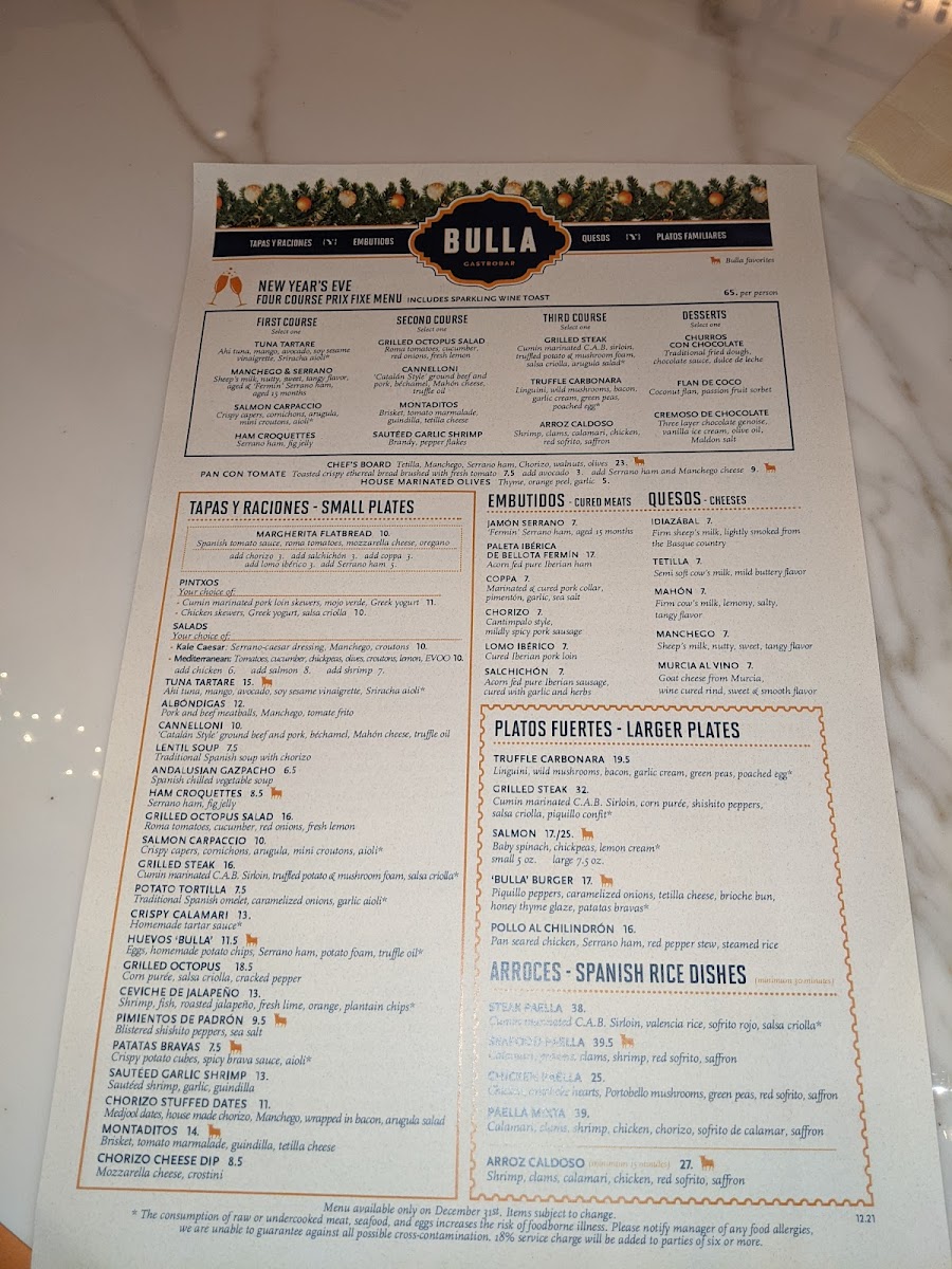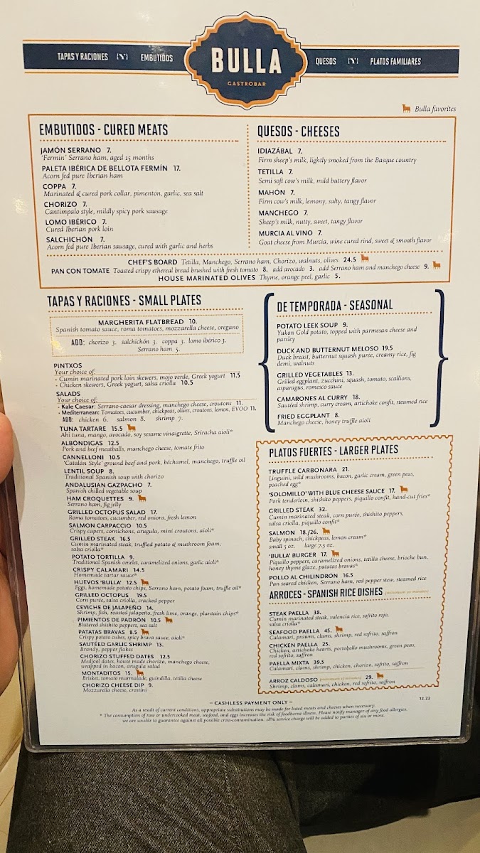 Welcome to Bulla Gastrobar, a vibrant Spanish dining experience located in Charlotte, NC. This culinary gem celebrates the rich flavors of Spain through an enticing menu that spans from savory tapas to hearty family meals. Highlights include the Brava Flatbread and the mouthwatering seafood paella, praised for its authentic flavors and expert preparation. The restaurant's atmosphere is lively, making it perfect for gatherings with friends or intimate dinners with family.